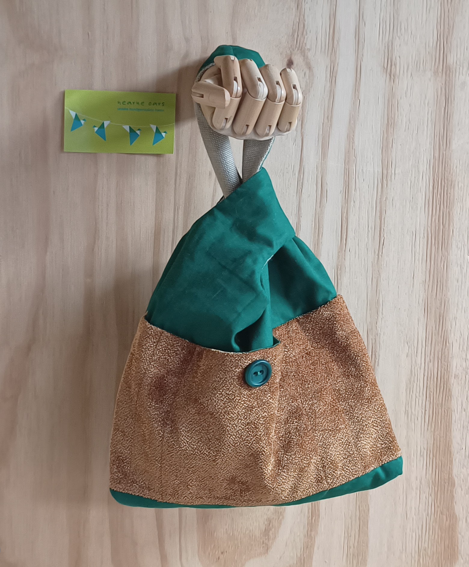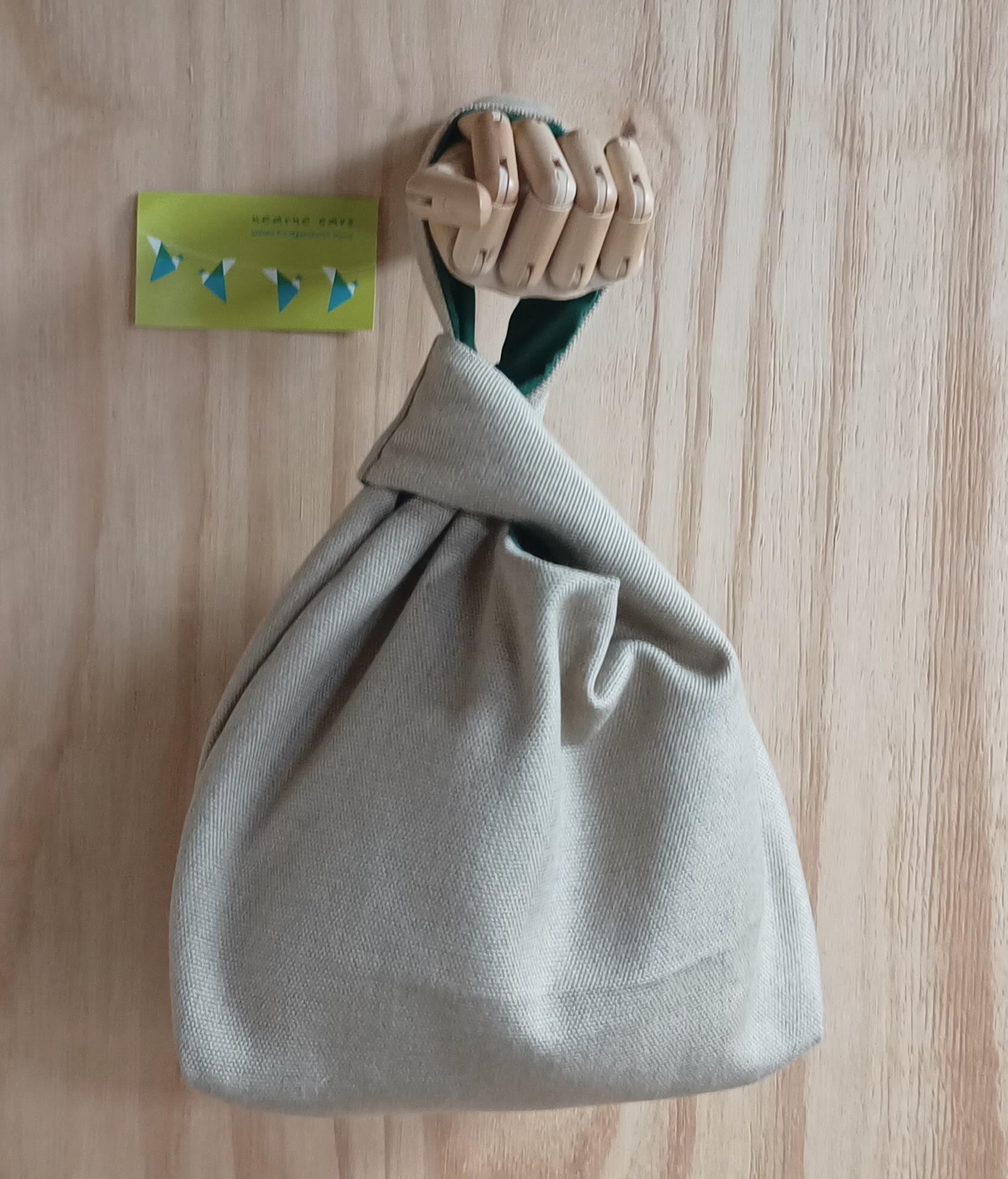 Dit is een Japanese knotbag. Dit brei/haaktasje is erg geschikt als polstas, zodat je waar je ook bent of waar je ook staat te wachten, je door kunt gaan met je brei- of haakwerk.