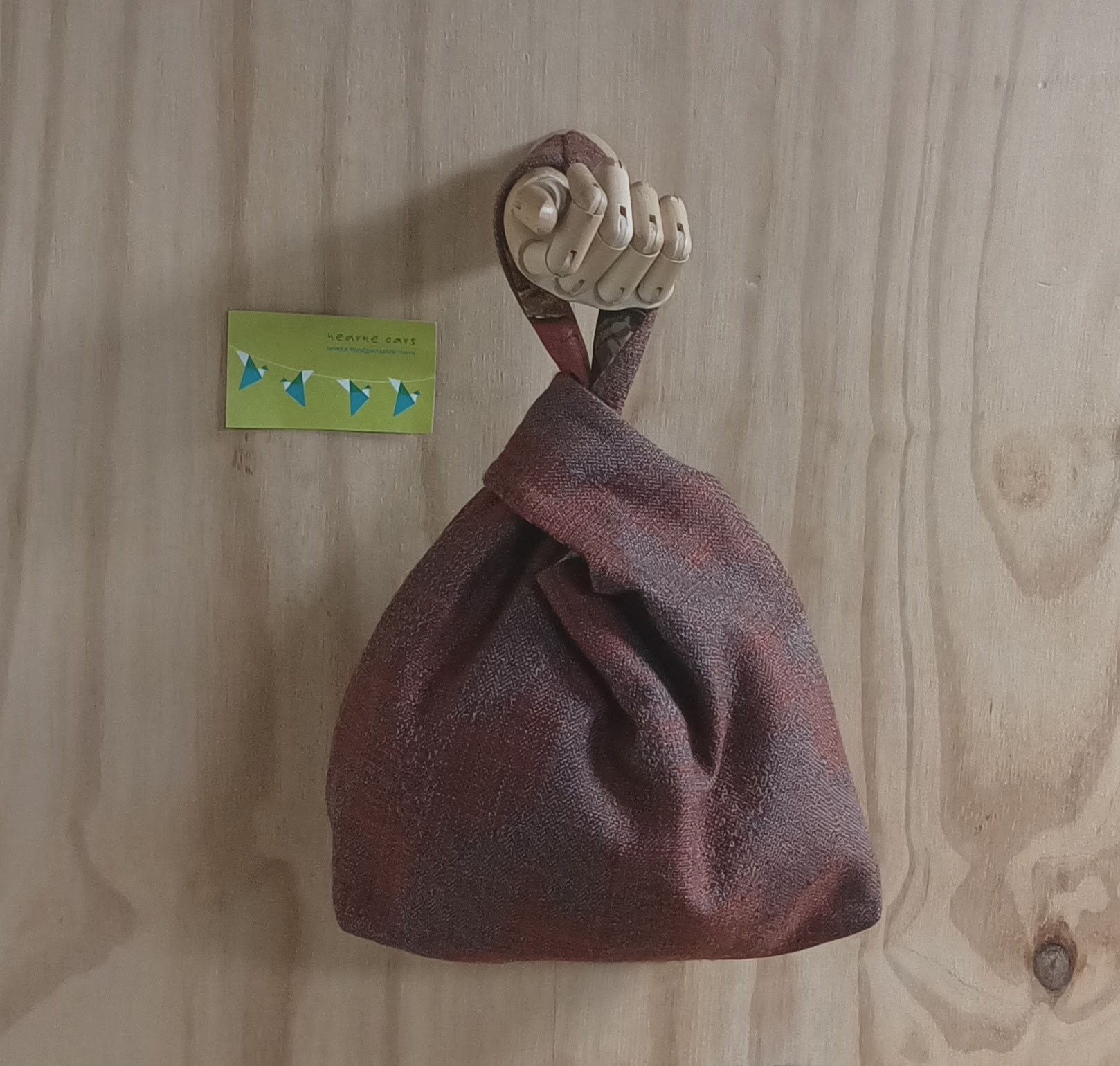 Deze japanese knotbag is uitermate geschikt om mee te nemen naar een feestje. Hangend om de pols of onderarm en je hebt je handen vrij. Het lange hengsel gaat door het korte hengsel en de tas sluit als vanzelf.