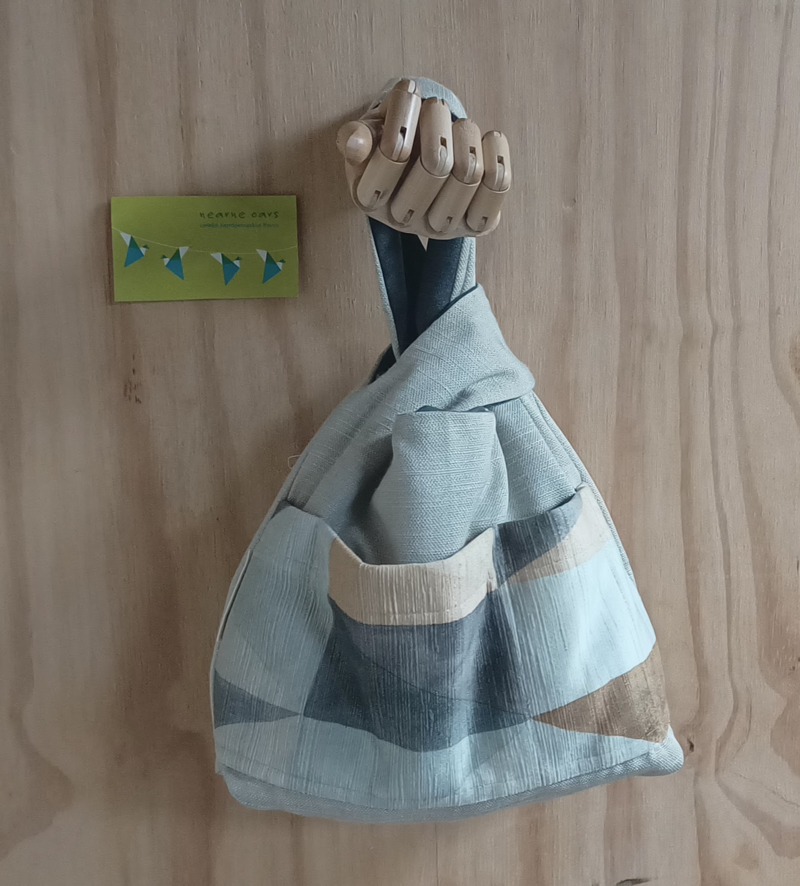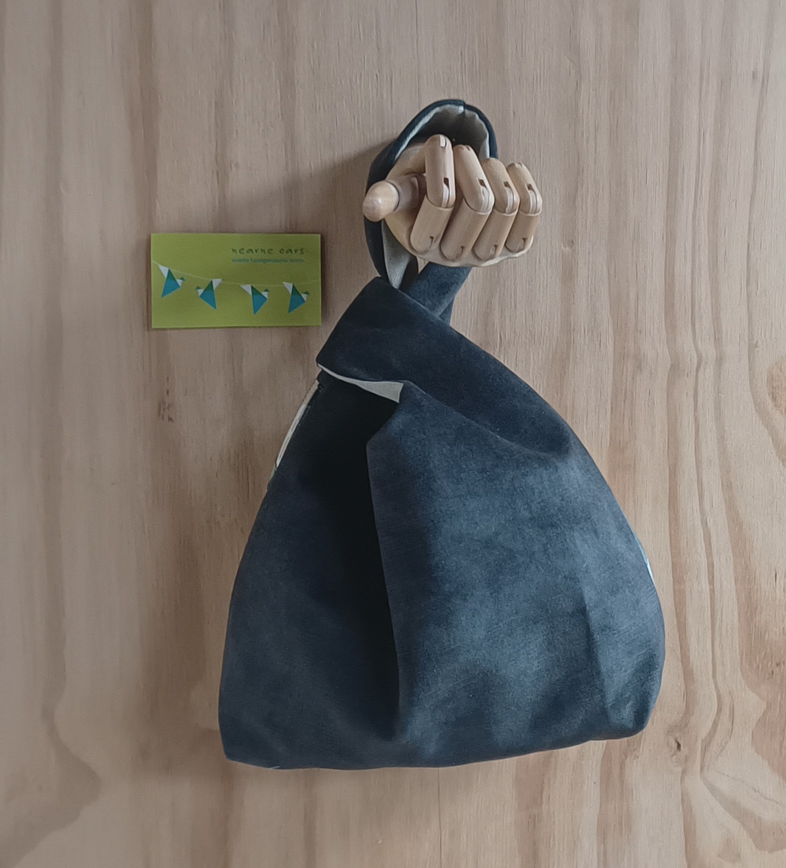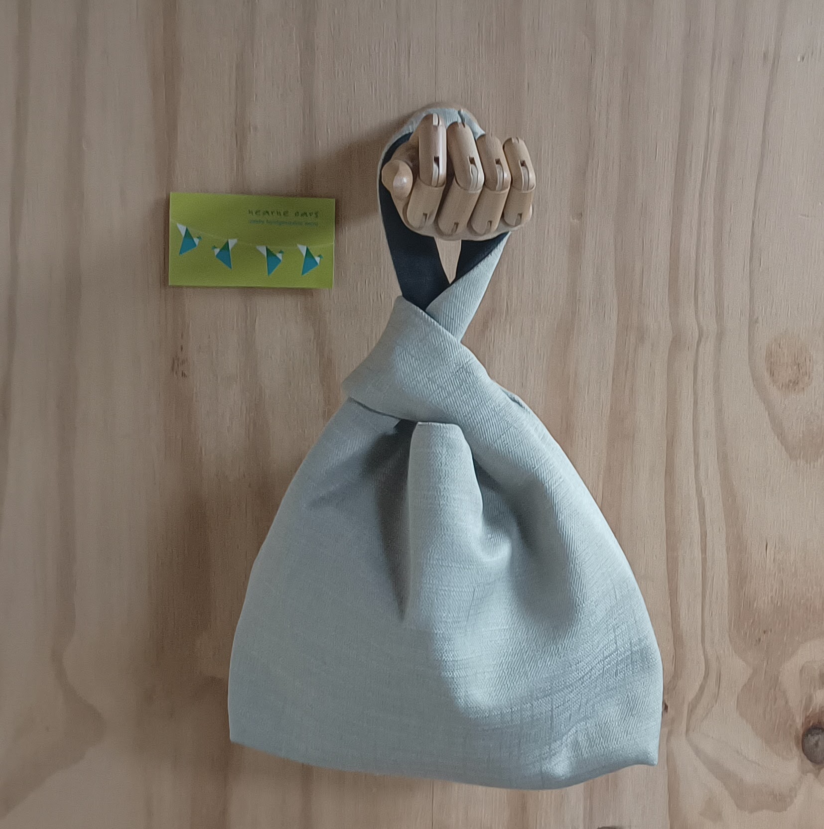 Dit is een Japanese knotbag. Dit brei/haaktasje is erg geschikt als polstas, zodat je waar je ook bent of waar je ook staat te wachten, je door kunt gaan met je brei- of haakwerk.