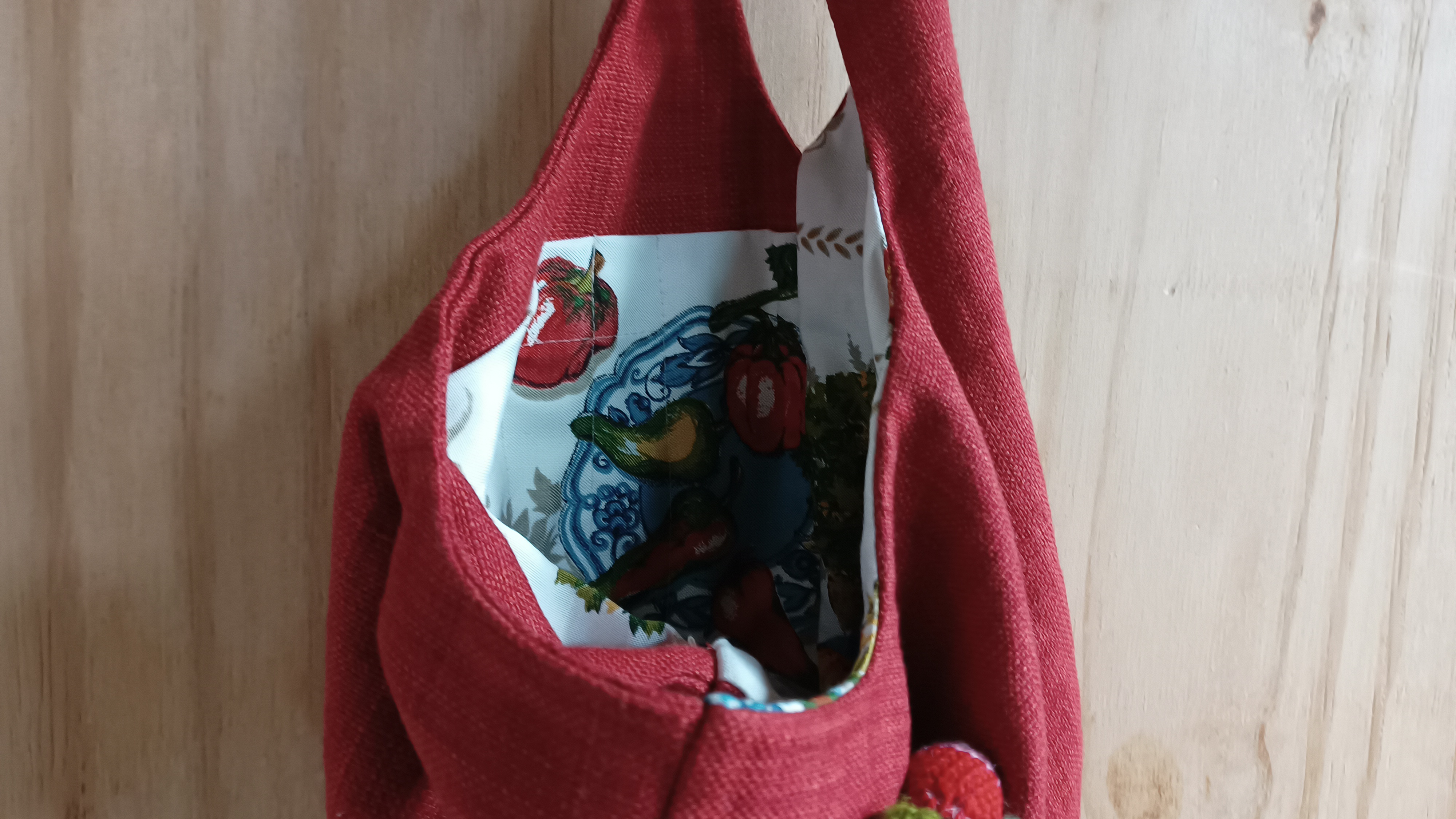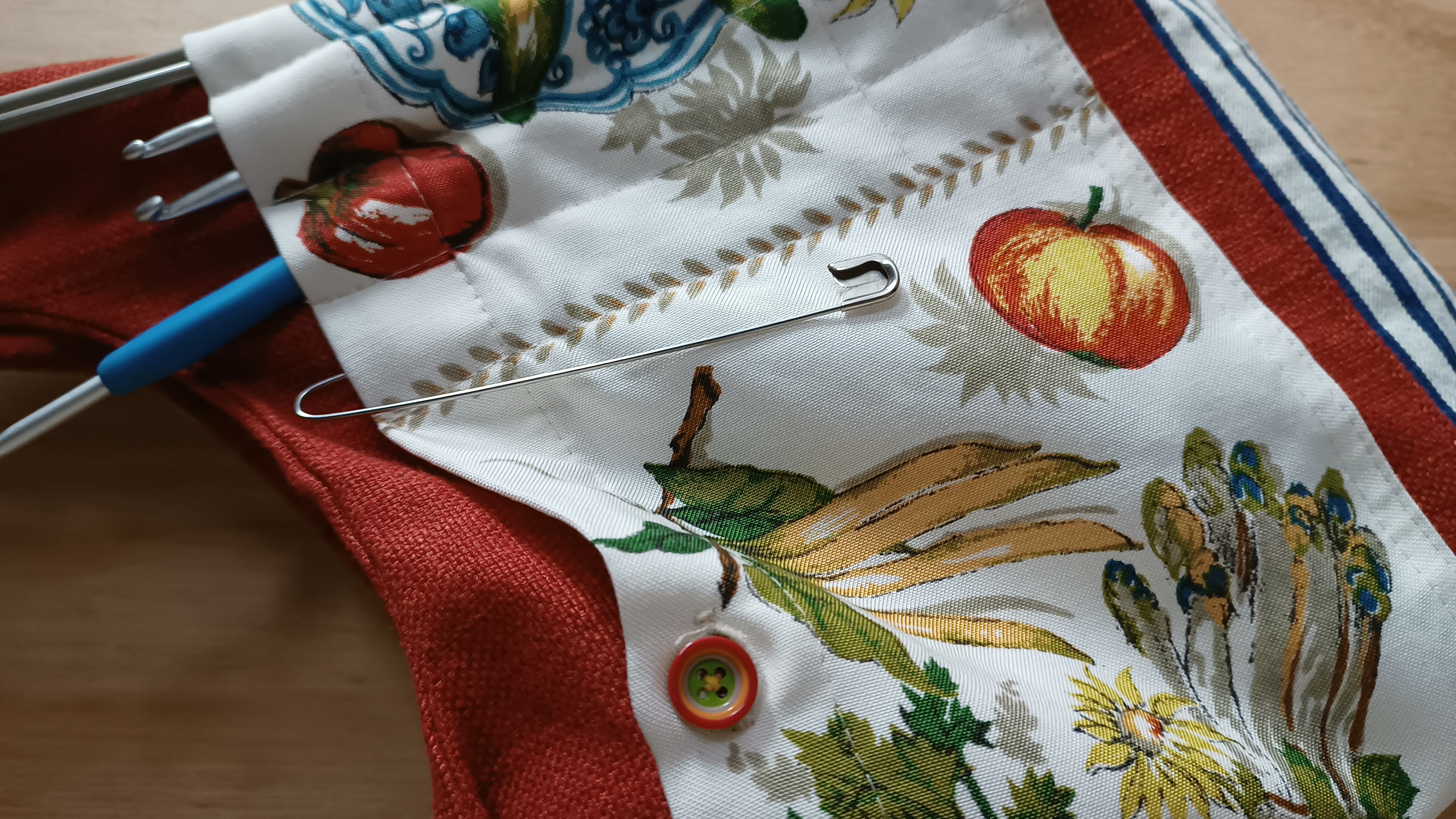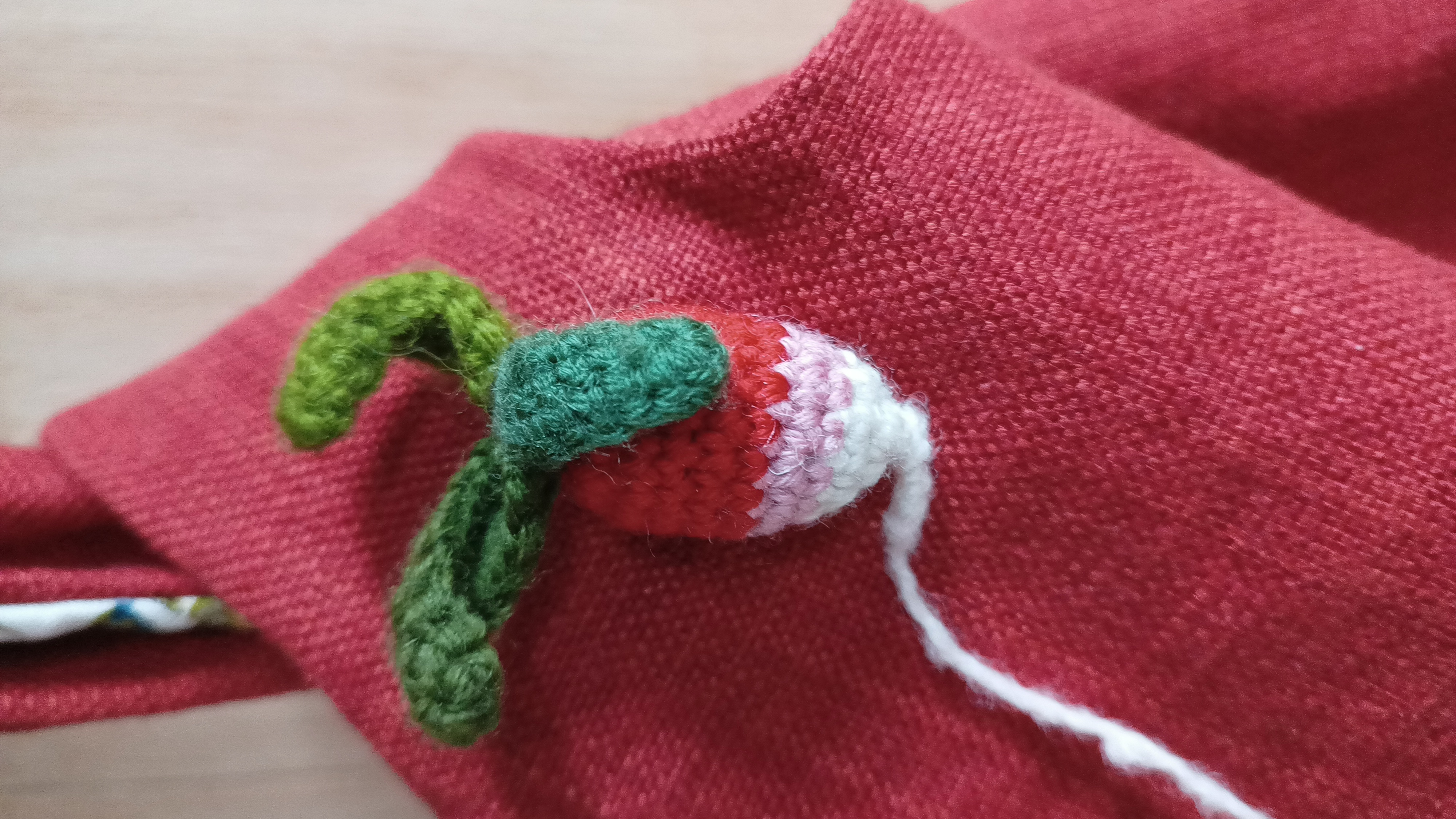 Dit is een Japanese knotbag. Dit brei/haaktasje is erg geschikt als polstas, zodat je waar je ook bent of waar je ook staat te wachten, je door kunt gaan met je brei- of haakwerk.