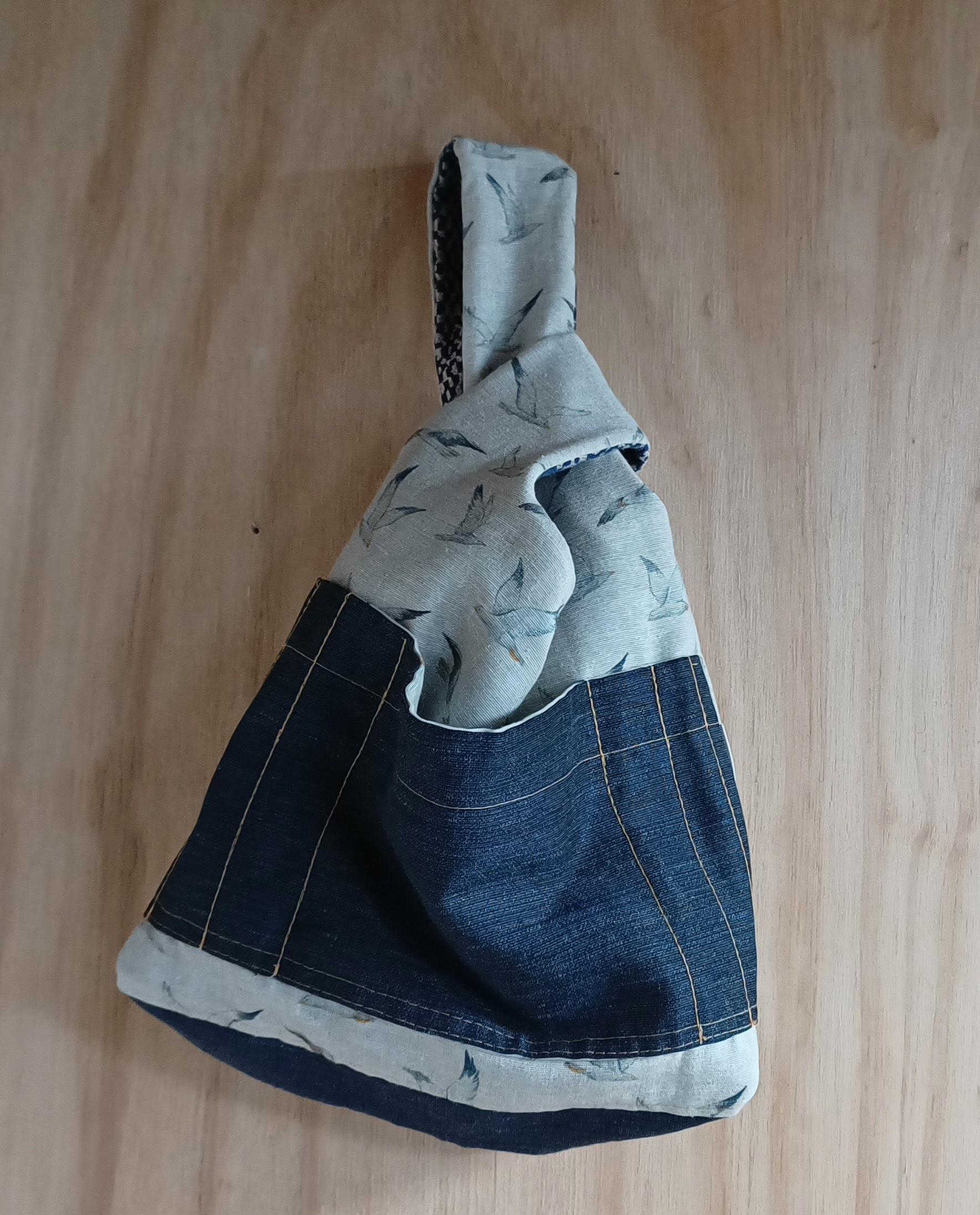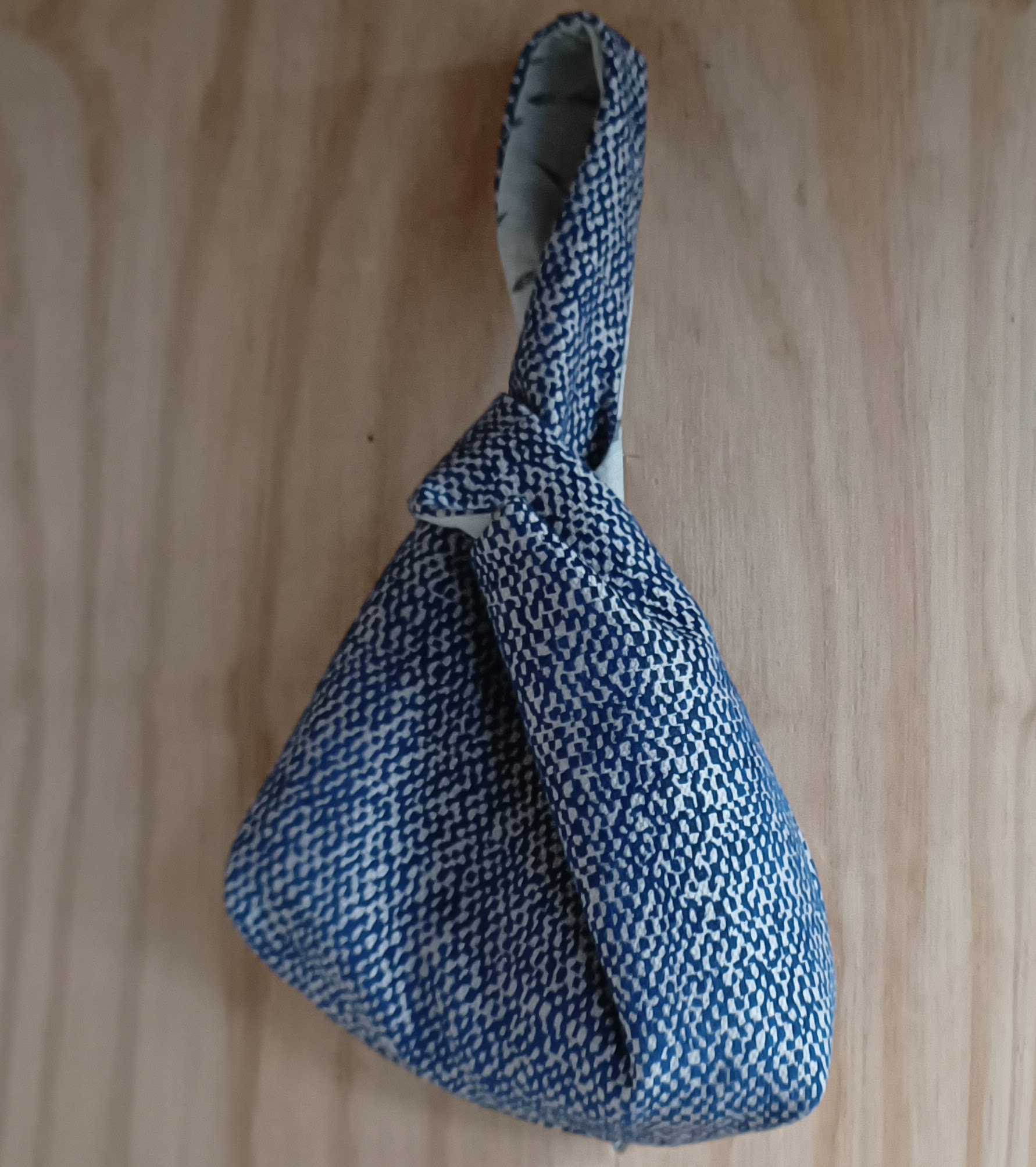 Dit is een Japanese knotbag. Dit brei/haaktasje is erg geschikt als polstas, zodat je waar je ook bent of waar je ook staat te wachten, je door kunt gaan met je brei- of haakwerk. De tas heeft een klein zakje aan de buitenkant en aan de binnenkant is ruimte voor wat extra haak- of breinaalden tot 20 centimeter.
